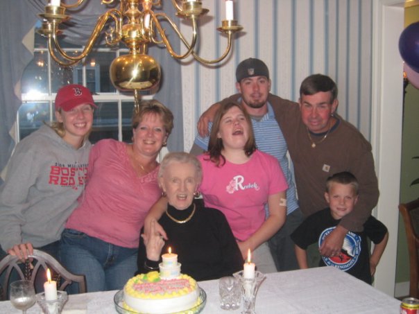 Sara Duzan (fourth from left) celebrates a birthday for her grandmother with her family. Pictured are (from left) Erin Hachey, Sara’s sister; Maryann, her mother; Virginia Herrity, her grandmother; Sara; David, her brother; Paul, her father; and Tyler, her nephew. The family has not seen Sara since June and is currently not permitted even to communicate with her by phone.