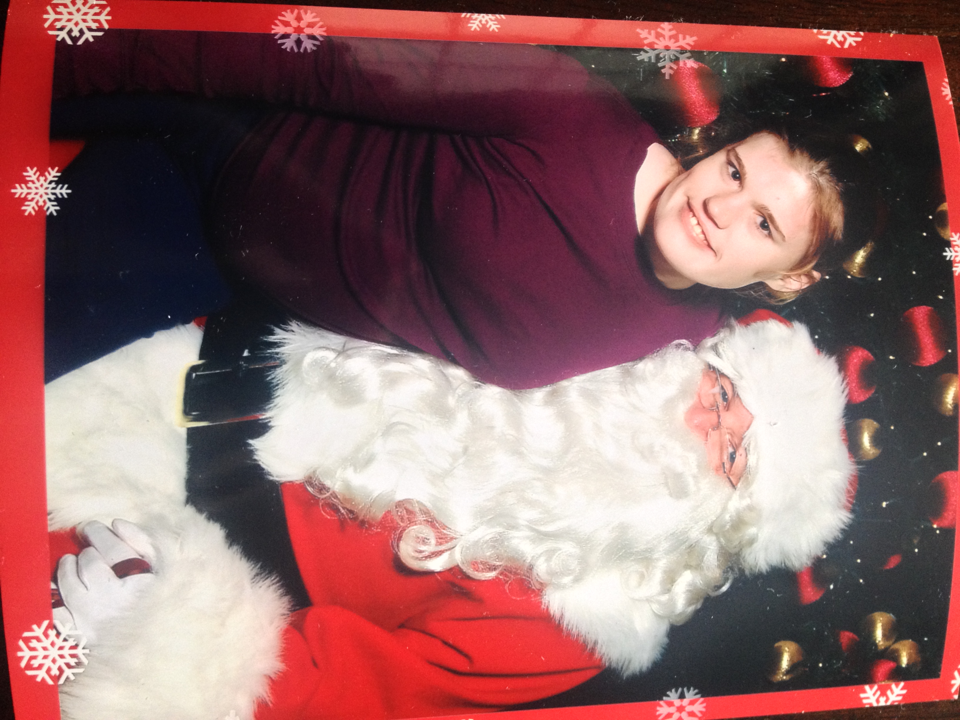 A photo of Sara taken with Santa at the mall, when Sara was last living at home. She was last at home between November 2011 and January 2013.