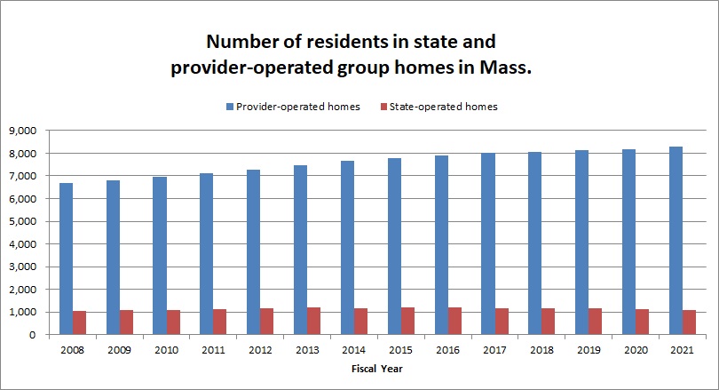 Previous data from DDS showed that the total census in the state-operated group homes declined from a high of 1,206 in Fiscal 2015, to 1,097 in 2021 — a 9% drop.